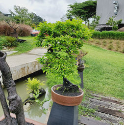 The Leopard tree forms an open crown with thin leaflets that provide light to moderate summer shade. The stem terminals of the tree have panicle spikes of brilliant yellow blooms. In bonsai, stem tips are typically cut to reduce the likelihood of blooming and facilitate tree ramification.